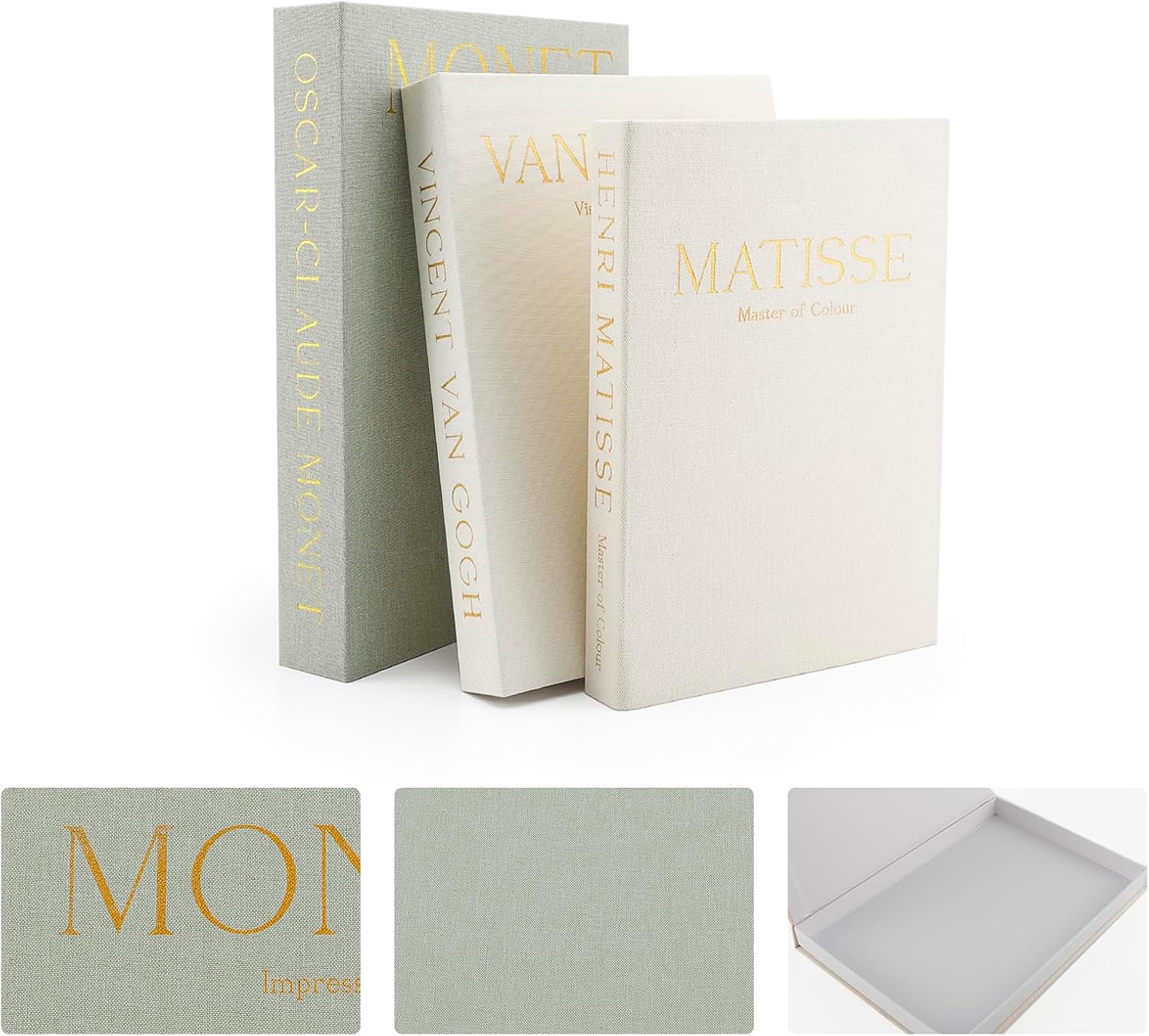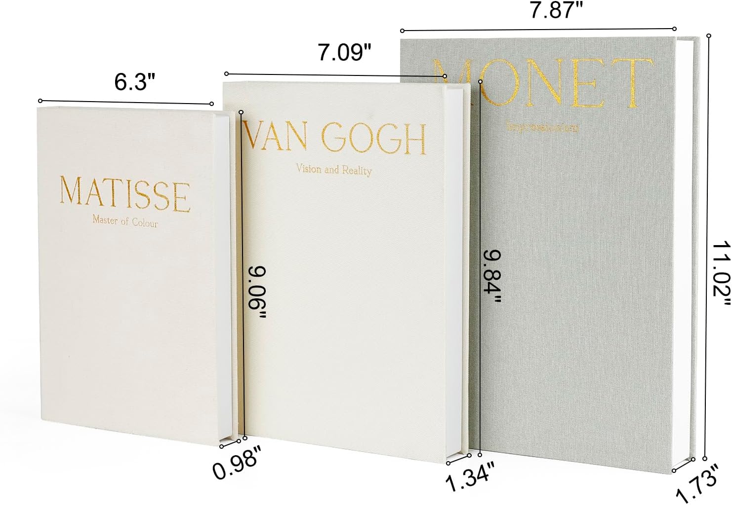 Each faux book features a hollow interior, ideal for discreetly storing jewellery, notes or small keepsakes, helping to keep surfaces tidy without compromising on style. Finished with premium linen covers and subtle gold foil lettering, they deliver an elegant, artistic feel that complements modern, minimalist and classic interiors alike. The set includes three realistic book sizes, making them perfect for stacking or styling individually. Lightweight yet durable, these decorative storage boxes are easy to maintain and designed for everyday use.